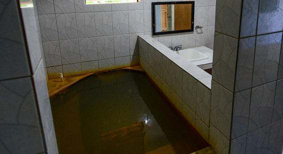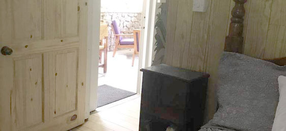 A 2-room suite with a large main room with two single beds and a desk, and a large bedroom with a queen bed and ensuite bath. The spacious veranda serves as a dining area and the adjacent self-catering kitchen facilities include a refrigerator and gas stove. Steps from your door is your private volcanic hot tub.